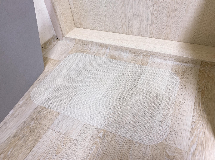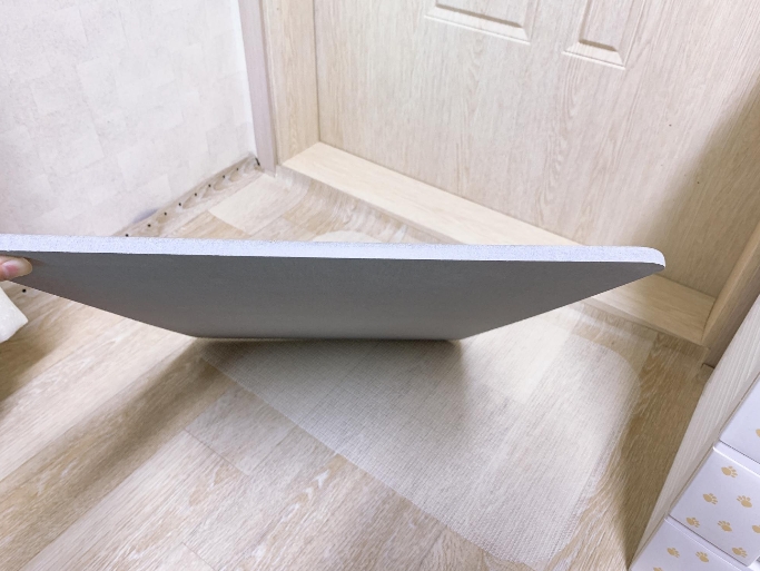 밑에 논슬립 패드를 먼저 깔고 그 위에 규조토 발 매트를 올리면 미끄러지지 않고 단단하게 고정되어 있어요.