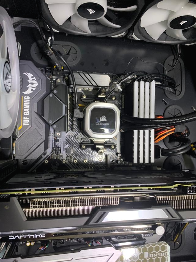 일체형 수냉 쿨러를 장착 후 나머지 부품들도 깔끔하게 장착시켰습니다.