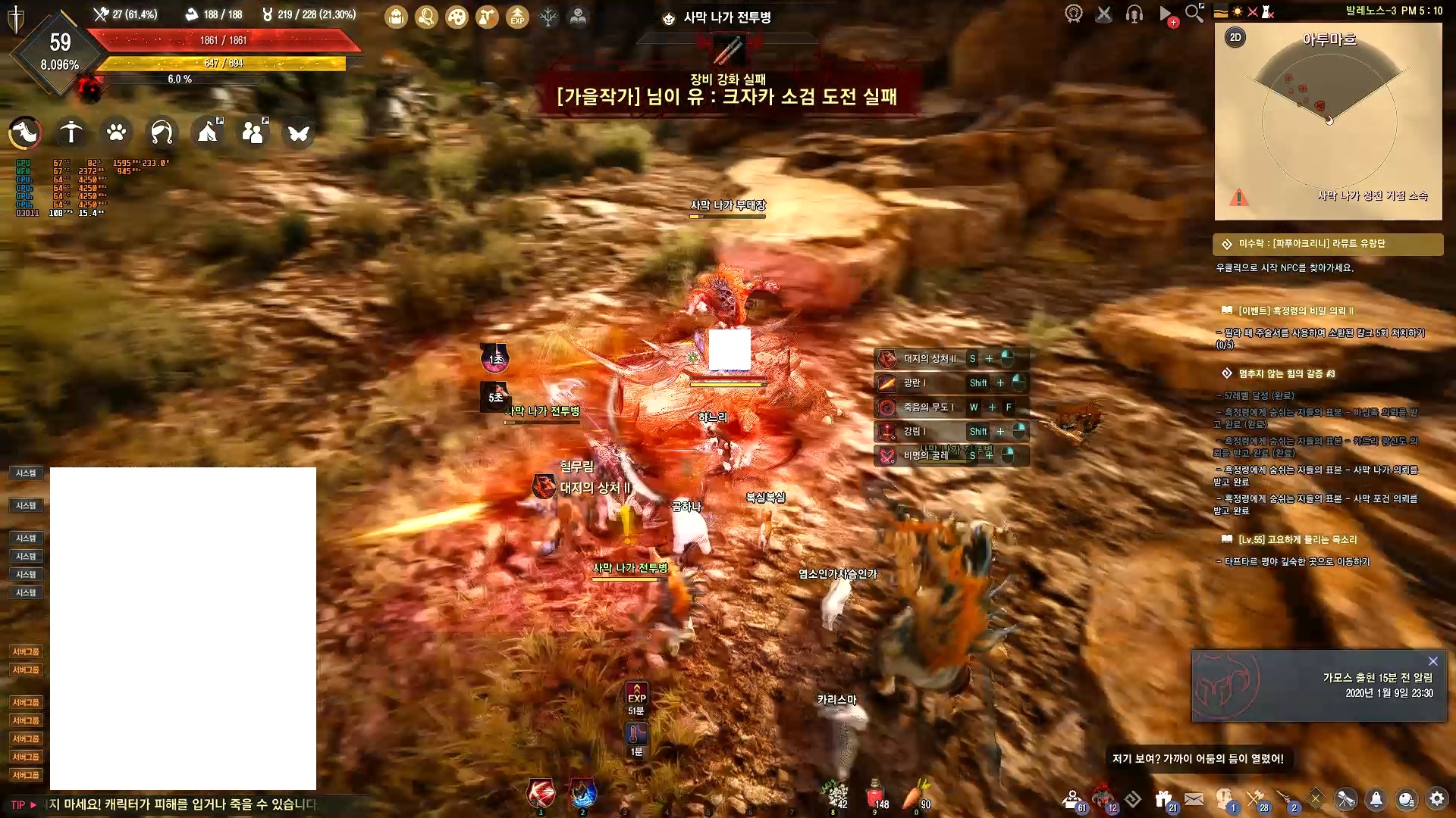 ▲먼저 MMORPG 검은사막의 사막 맵에서 나가 사냥 시 프레임입니다.
