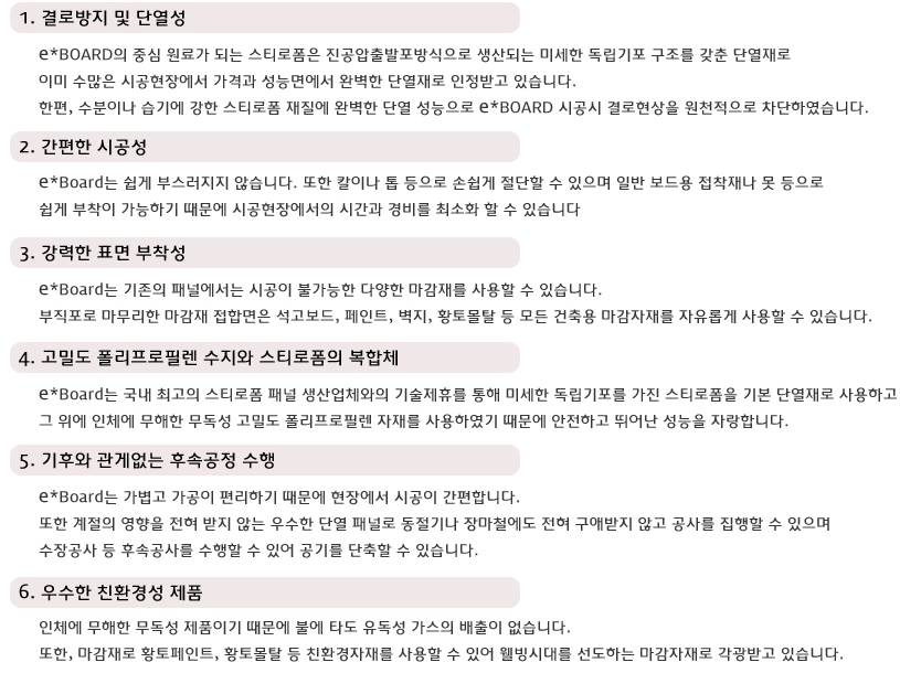 그러니 꼭 이보드를 시공할 때는 시공 부위에 맞는 eBoard두께를 사용해주셔야 한다는 거!! 잊지 마세요!!