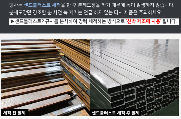 녹이 발생된 상태에서 도장을 하게 되면 도장 안쪽에서 이미 녹에 의한 부식이 진행되고 있기 때문에 아무 소용이 없습니다.