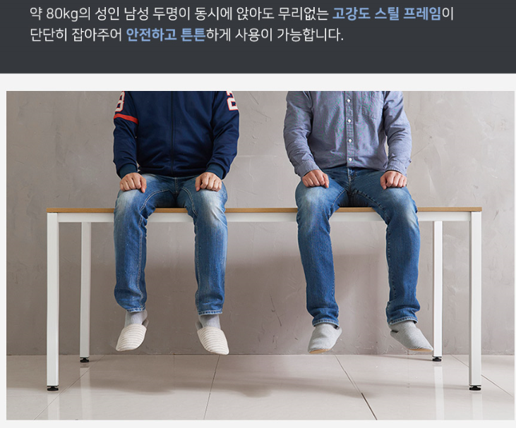 80kg 성인 두 명이 올라타도 단단하게 견뎌주는 esmart 스틸 테이블 1800x 400입니다!