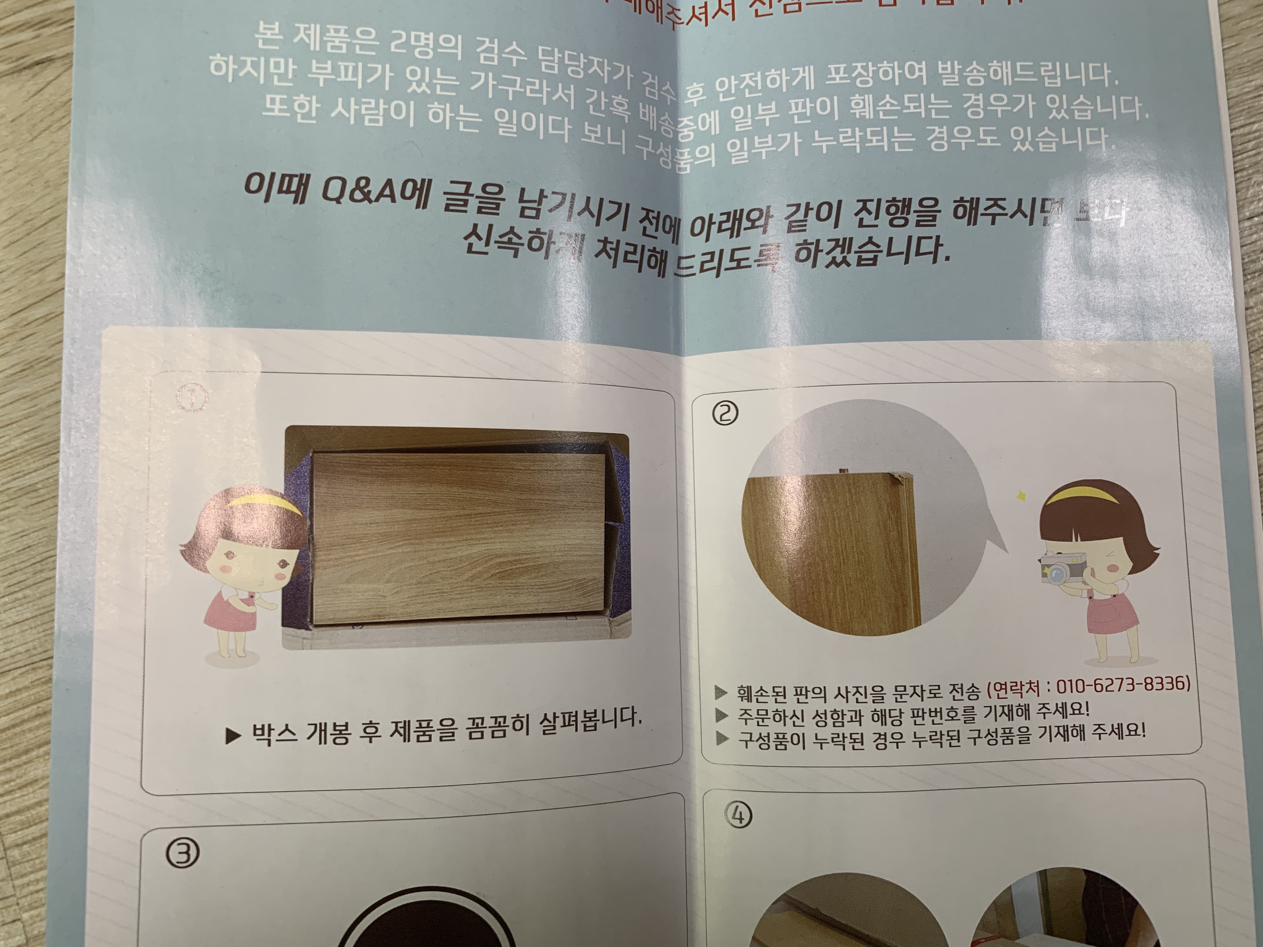 처음에 받았을 땐 테이블이 살짝 파손되어있었어요.