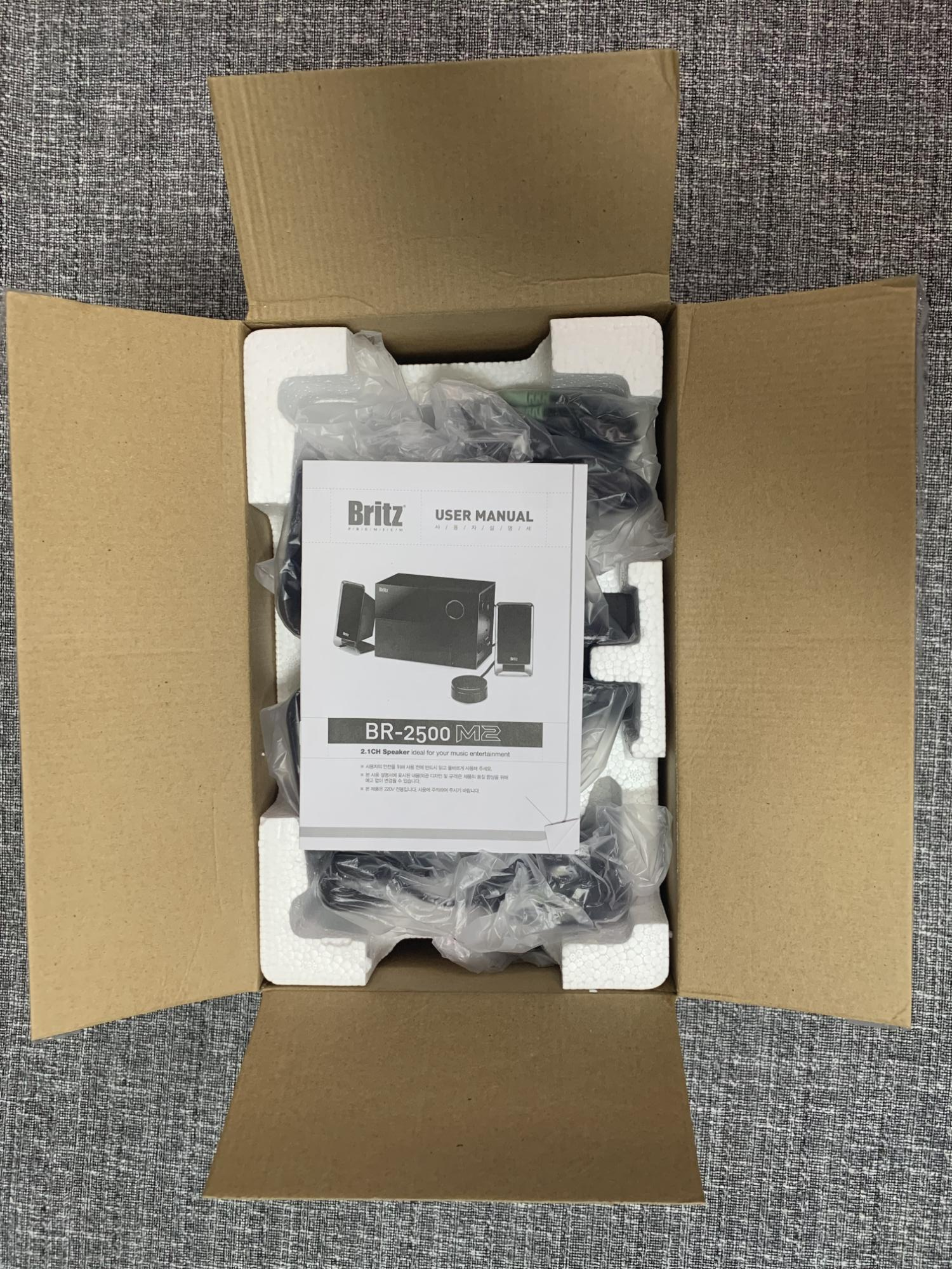 박스를 뜯으니 역시 브리츠 다운 믿음직스럽게 포장된 스피커와 설명서가 보입니다.