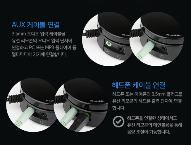 그래서 소리를 조절하기 위해 손을 멀리 뻗지 않아도 키보드 바로 옆에 놔두고 언제든지 볼륨을 조절하거나 헤드폰을 연결해서 사용할수 있답니다.