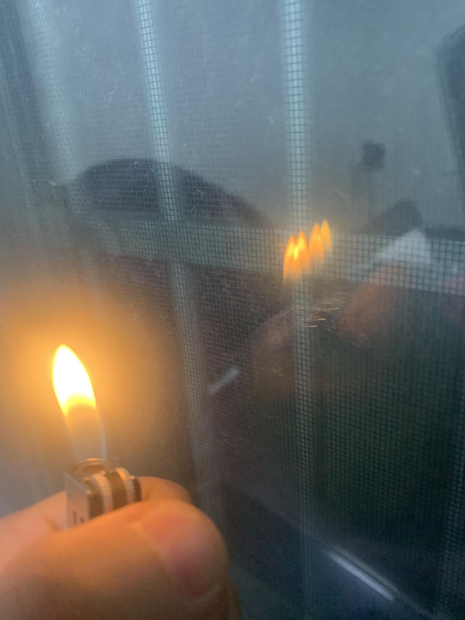 저희 집의 창문 같은 경우 바깥쪽 창문은 유리가 두 겹으로 된 이중유리를 사용하였고요. 안쪽 유리는 이 지역에 사용되는 규격보다 더 두껍게 사용하였습니다. 거주 중이신 주택의 창문이 이중유리인지 아닌지는 위 사진처럼 유리 가까이에서 라이터를 켜보시면 쉽게 아실 수 있습니다. 라이터 불이 여러개로 보이지 않고 하나로 보인다면 유리 하나로 된 창문입니다.