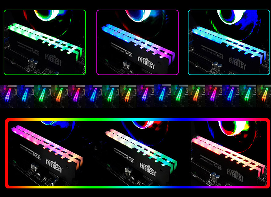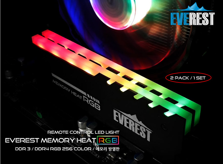 EVEREST MEMORY HEAT RGB 제품은 램 오버를 하시는 분들과 화려한 RGB LED 효과를 원하시는 분들을 모두 만족시켜드릴 그런 제품이 아닐까 합니다.