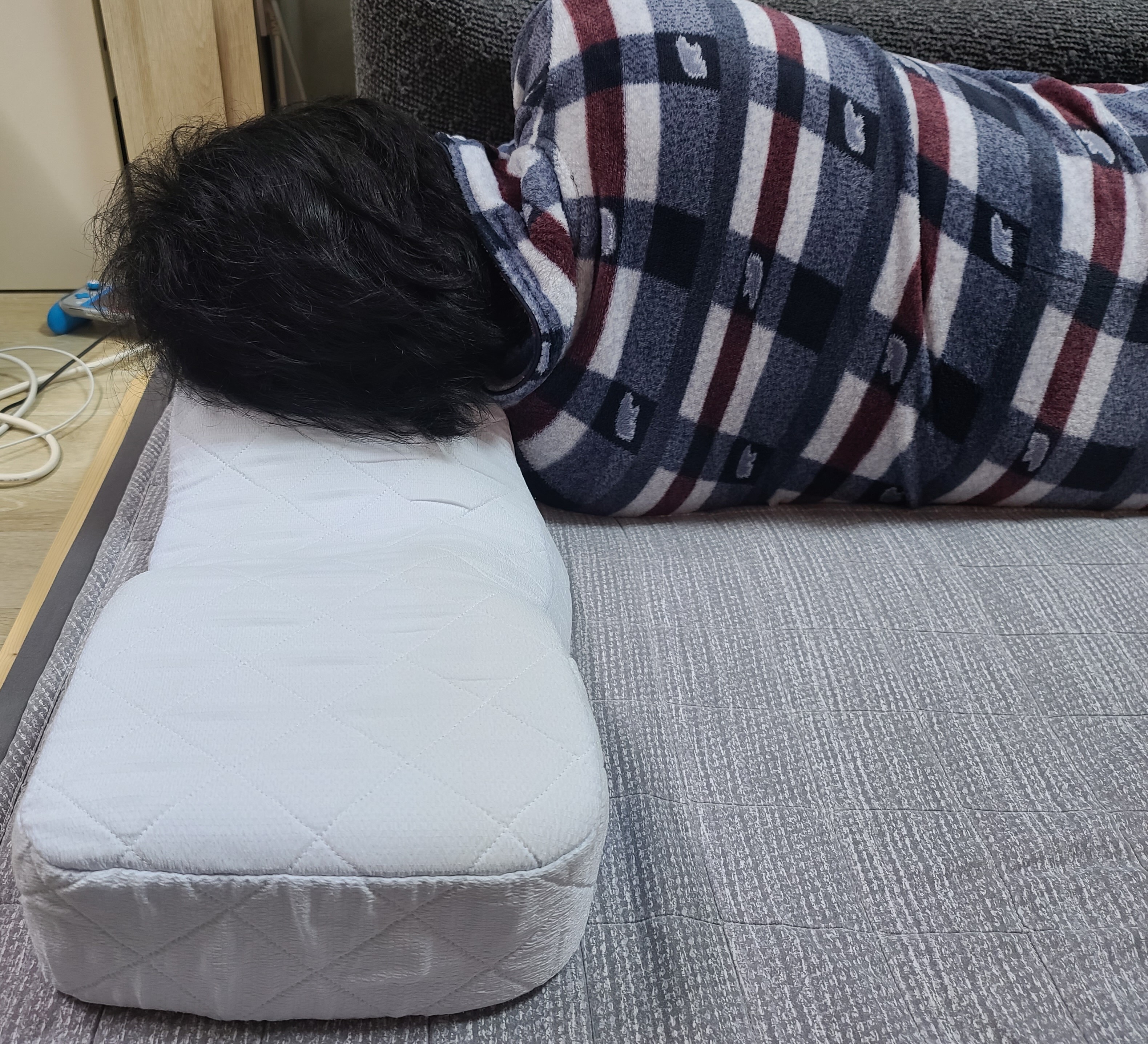 처음 와이프가 편하게 잠들고 아침에 눈뜰 때 목을 아파하지 않았으면 해서 구입해서 사용했는데요. 사용한 첫날 아침부터 와이프가 정말 편하게 자고 아침에 목 아픈 게 많이 사라졌다고 해서 신기하더라고요. 사용하는 기간 동안 가끔 제가 한 번씩 써보자고 말하기가 미안할 정도로 편안해했어요.