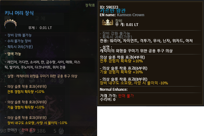 | 크로그달로의 눈물 | 카마실비아 사냥터에 나오는 별사탕 밀렵꾼과 보물상자 처치시 확률 획득 |