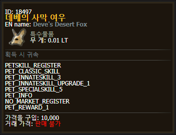 받은 후 반려동물로 등록하면 사막 여우(클래식)와 동일한 펫으로 등록돼요.