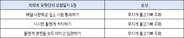 라뮤트 유랑단 모험일지 5권의 보상은 아래에서 확인할 수 있어요.