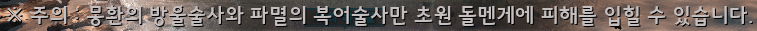 비범한 돌멘게는 진행 시 상단에 몽환의 방울술사와 파멸의 복어술사만 초원 돌멘게에 피해를 입힐 수 있다는 문구가 뜨기 때문에 꼭 원거리 딜러로 딜링을 해주세요.