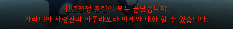 혈전의 돌멘게 의뢰까지 완료하면 천년전쟁 훈련이 모두 끝났다면서 가라니아 사령관과 파푸라오라 여제와 대화할 수 있게 돼요.