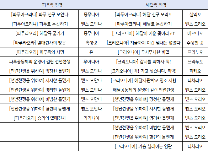 초반 공통 메인 의뢰가 지나면 파푸족, 해달족 나뉘어서 메인 의뢰가 진행돼요.