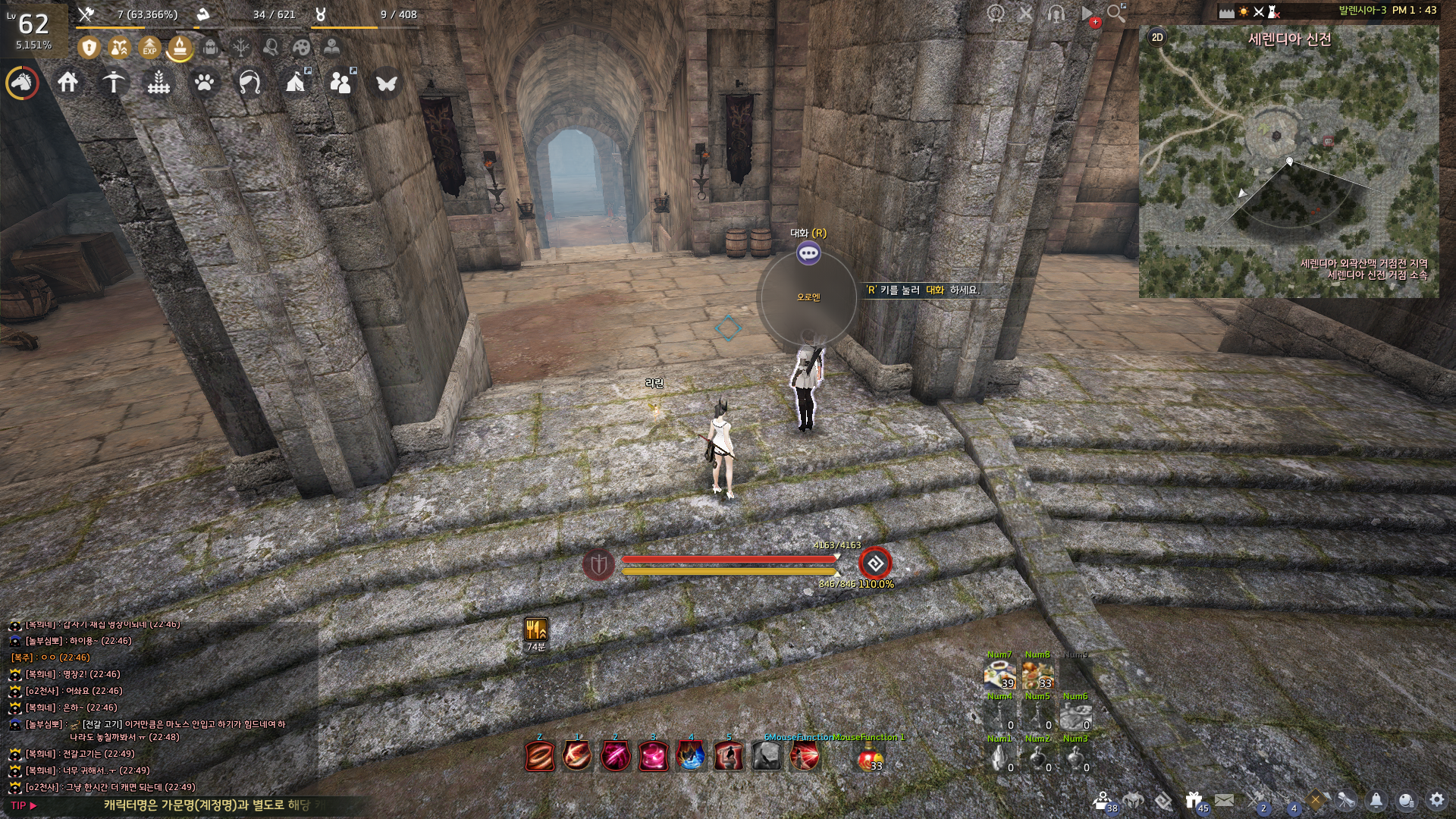 1장 진행 시 획득한 '녹이 슨 머리띠'를 세렌디아 신전 입구에 있는 오로엔에게 건네주면 돼요.