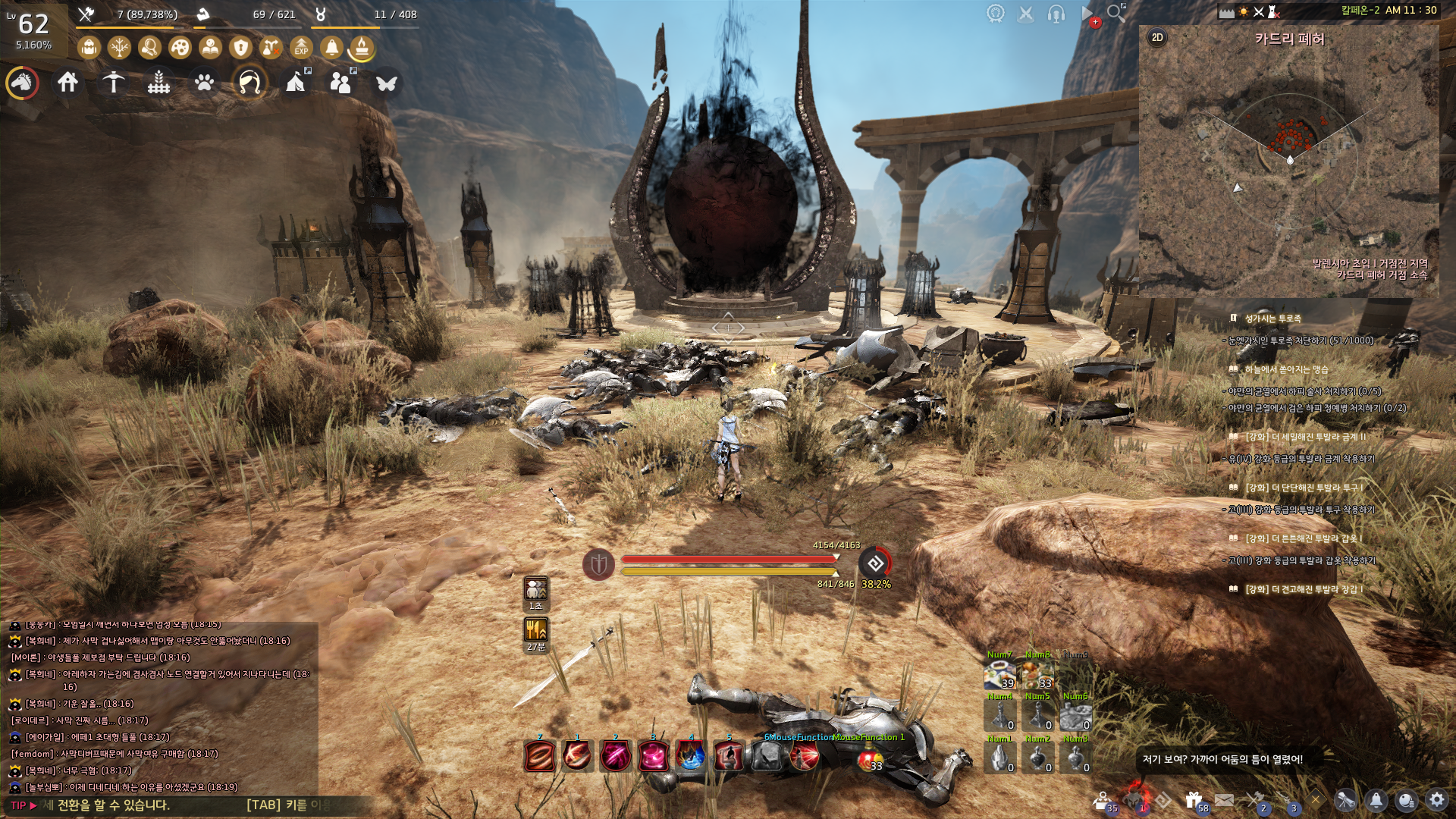 발렌시아의 사냥터인 카드리 폐허에서 몬스터 3000마리 1500마리를 처치하면 되고, '카드리 소환석' 지식을 획득해야 돼요.