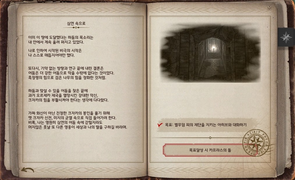 카프라스의 기록 1권을 완료하면 진행할 수 있어요. 카프라스의 기록 모험일지는 보상으로 카프라스의 돌을 주는데 현재 인게임 거래소에서 사기가 매우 힘들어서 카프라스의 돌이 필요하다면 모험일지를 완료하는 게 좋아요.
