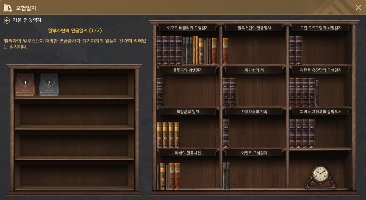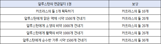 2020.04.14 업데이트로 추가된 모험일지 알루스틴의 연금일지 1권 정보예요.