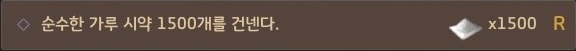 정제수 : 강물로 채운 병 or 흙탕물 주머니를 가공(L)으로 솎아내기, 모래알 바자르 <잡화상인> 와이다에게 구입 (5000 은화)
