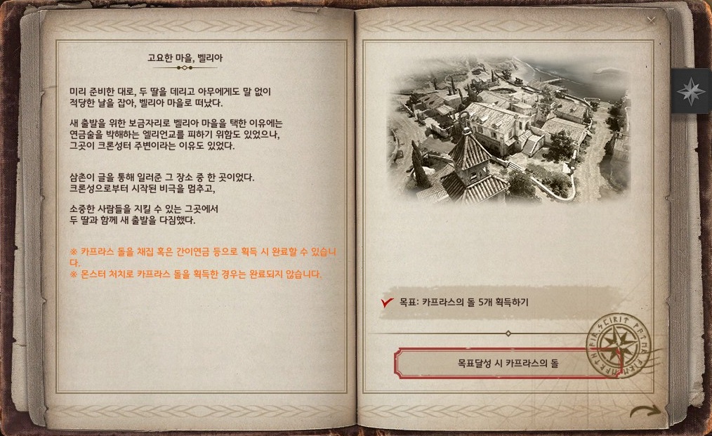 단, 사냥으로 획득하는 카프라스의 돌은 해당 모험일지를 완료해주지 않아요.