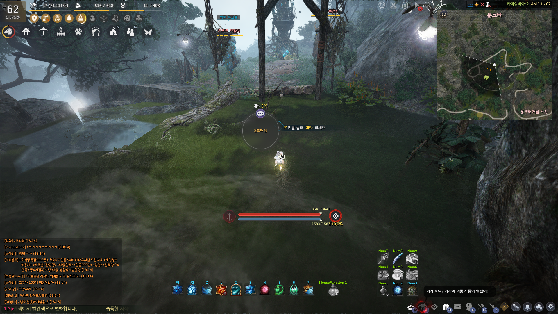 → 올룬의 계곡 거점 기준 3시 방향 <깨어있는 자> 루트라곤 장로 앞