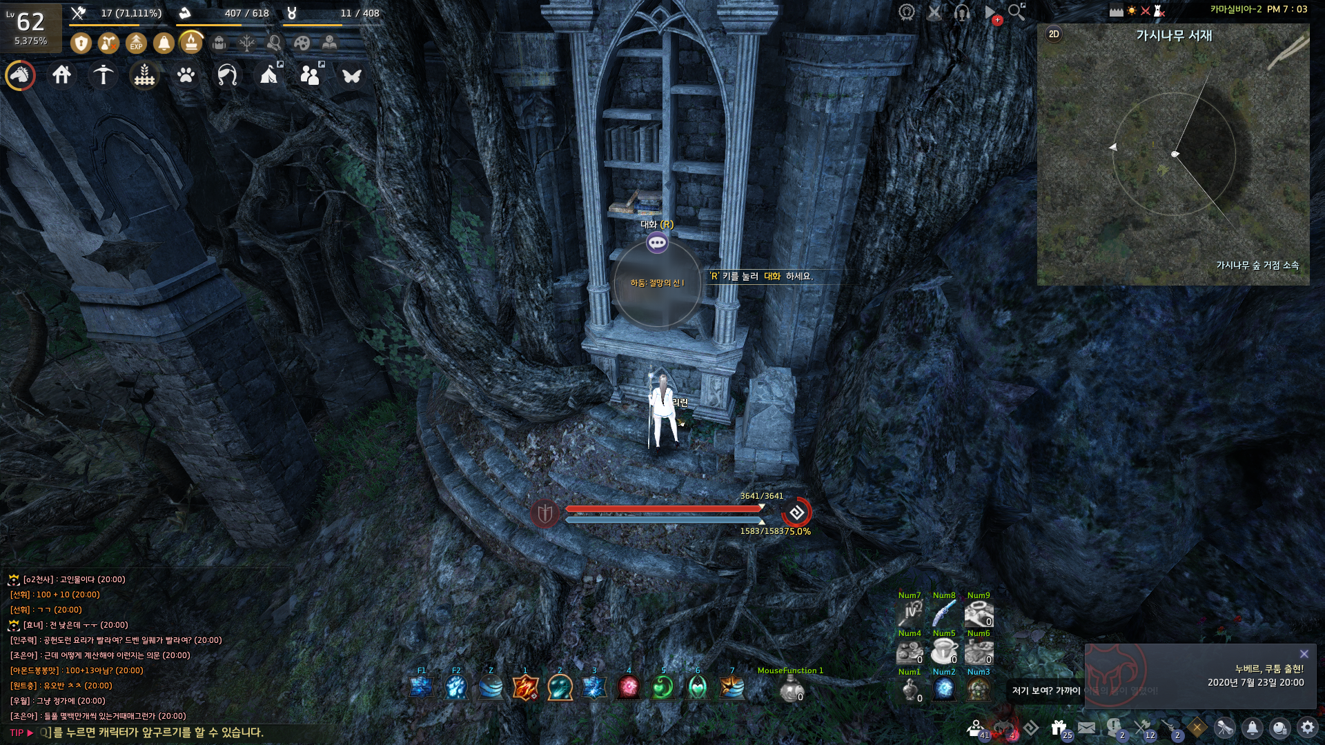 가시나무 감옥에서 획득할 수 있는 지식은 생각이 잠든 묘 몬스터가 너무 강하기 때문에 거점전 시간에 거점전 채널에서 진행하는 게 좋아요.