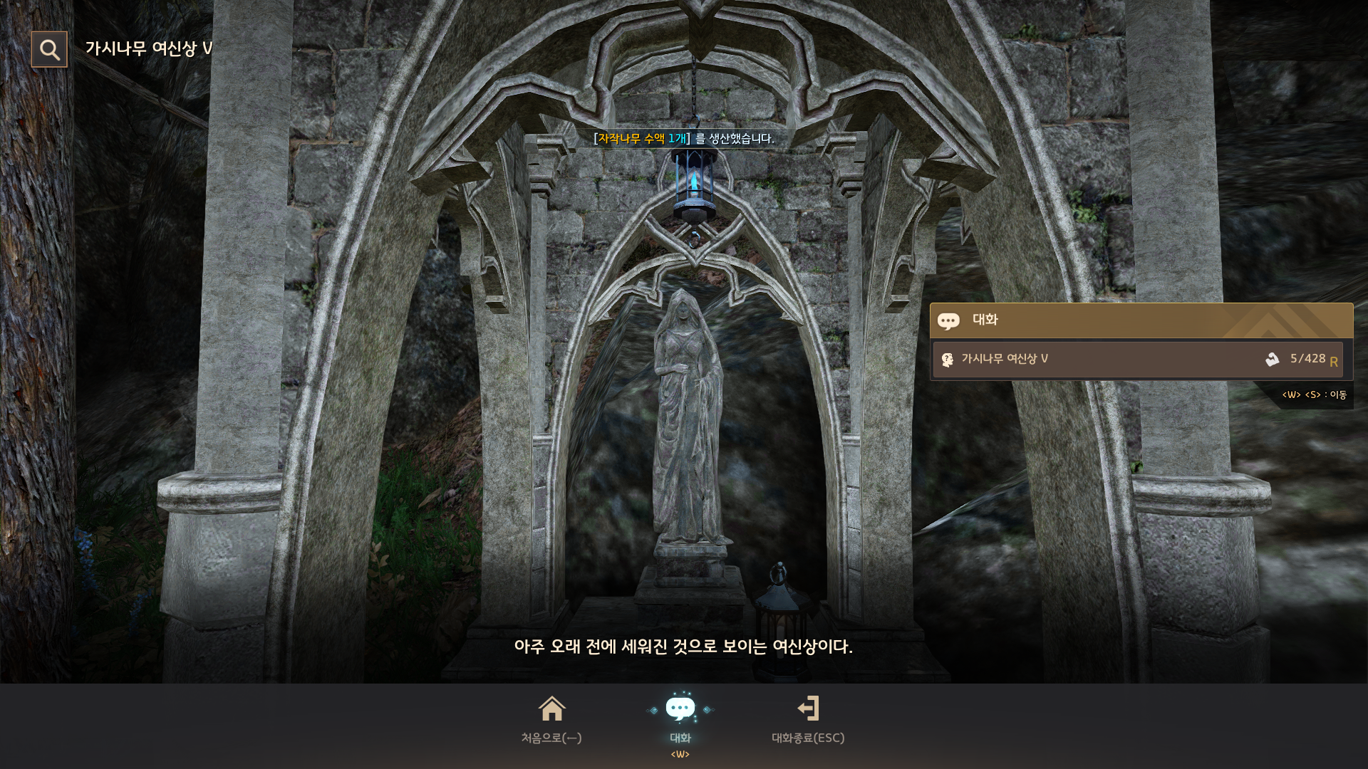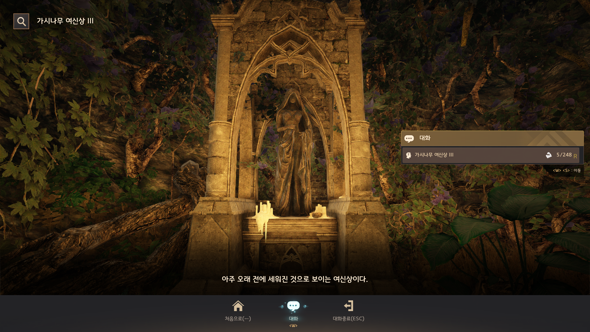 → 가시나무 숲 <탐험 거점 관리> 오펜실라가 내려다보고 있는 여신상