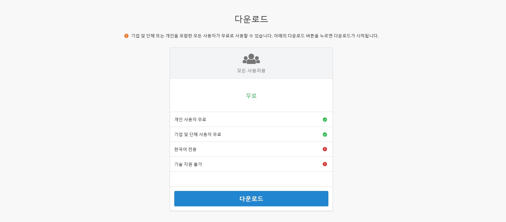 그럼 이렇게 다운로드 페이지가 열리게 되고 파란 바탕의 다운로드 버튼을 클릭하시면 픽픽을 다운로드 해주셔서 감사합니다.라는 창과 함께 다운로드가 시작됩니다.