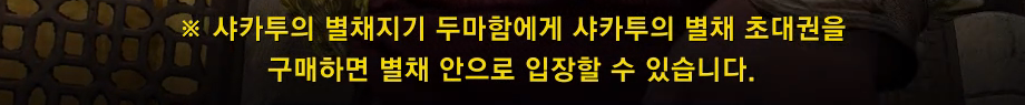 → 그믐달 비전서를 사용하지 않고 있다면 샤카투의 별채 초대권을 구매해야 별채 안으로 들어갈 수 있어요.