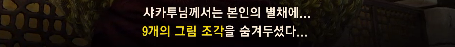 - 샤카투의 별채 안에서 그림 조각 9개를 찾아 조합하기
