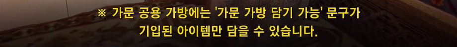 - 단, 아래 아이템은 가문 가방으로 이동할 수 없습니다.