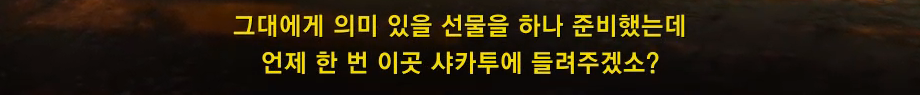 ● 발렌시아의 대부호 샤카투가 칸투사 사막에서 특별한 고대 유물을 발견하여 그와 깊은 관계를 맺어온 전 지역의 모험가들에게 샤카투의 영역으로 초대장을 뿌렸습니다. 그의 초대를 받고 고대 유물을 확인한 모험가들은 이를 '가문 가방'이라 칭하였습니다.