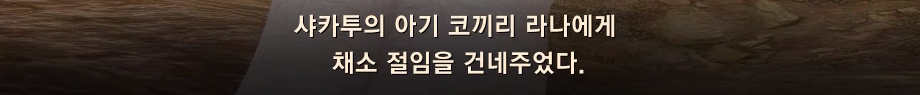 완료 대상인 아기 코끼리 라나는 샤카투 마을의 <재료상인> 아렌다가 있는 바위 쪽에 있어요.