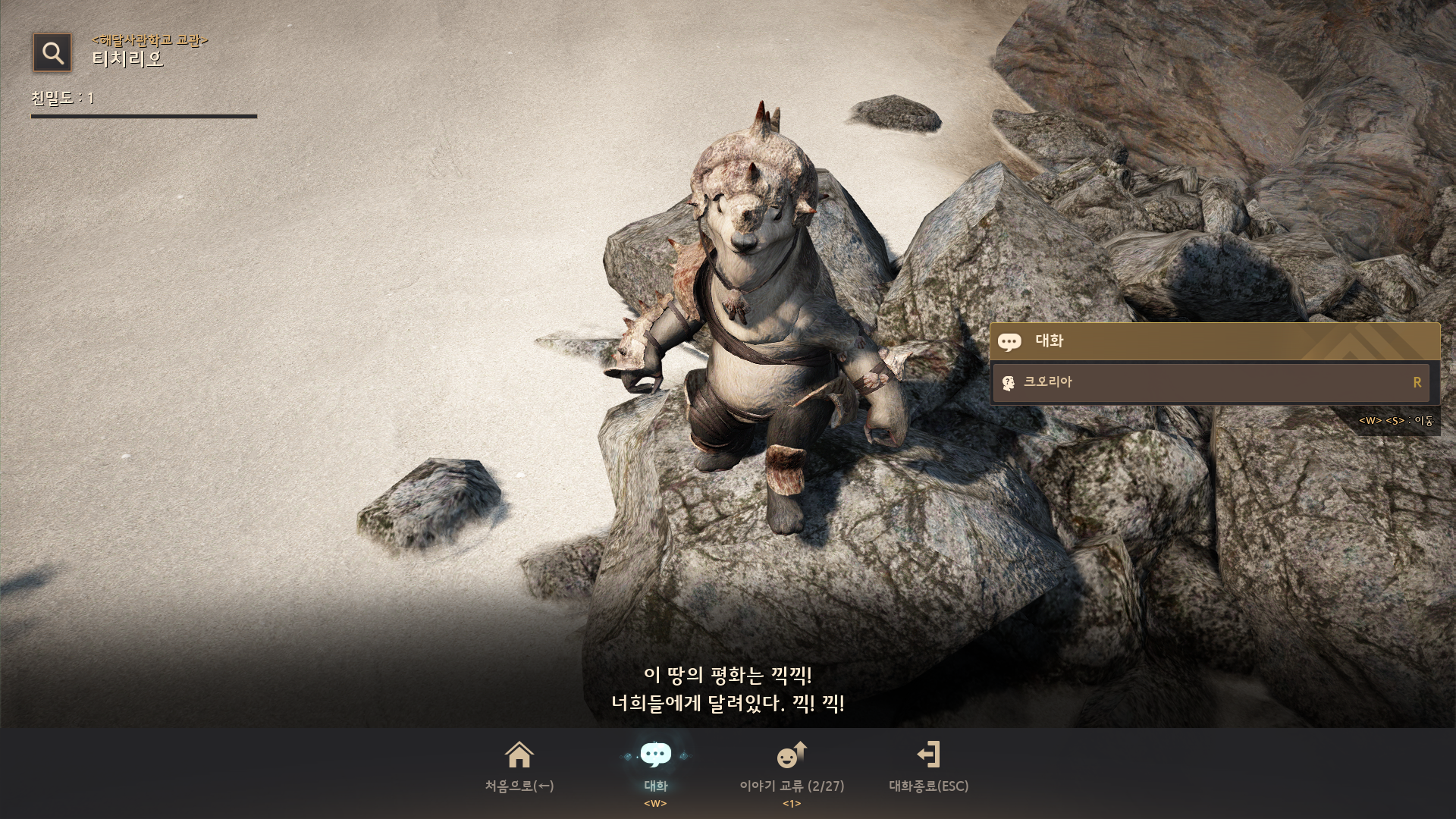 ● 치리쿵, 크오리아 지식 획득이 불가능했던 현상이 특정 NPC와 상호 작용을 통해 획득할 수 있도록 수정되었습니다.