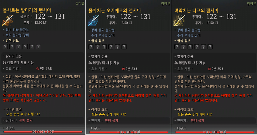 발타라의 정열 1개 오기에르의 이치 1개 나크의 기백 1개 광기의 꽃 1개 망령의 기운 1개