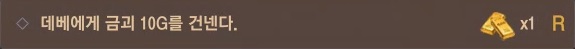 - 데베에게 금괴 10G 건네고 물건 받기