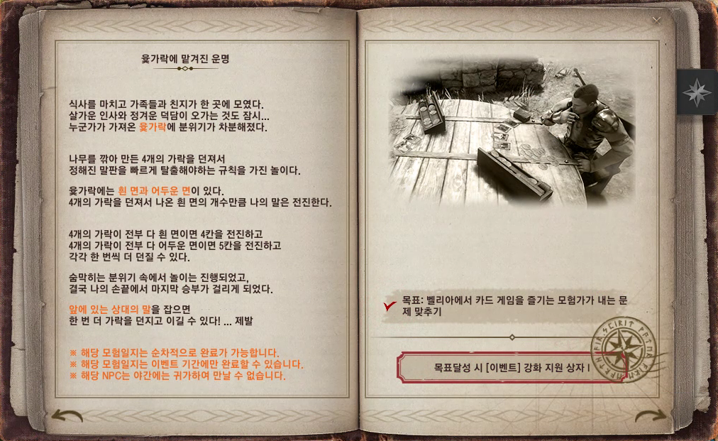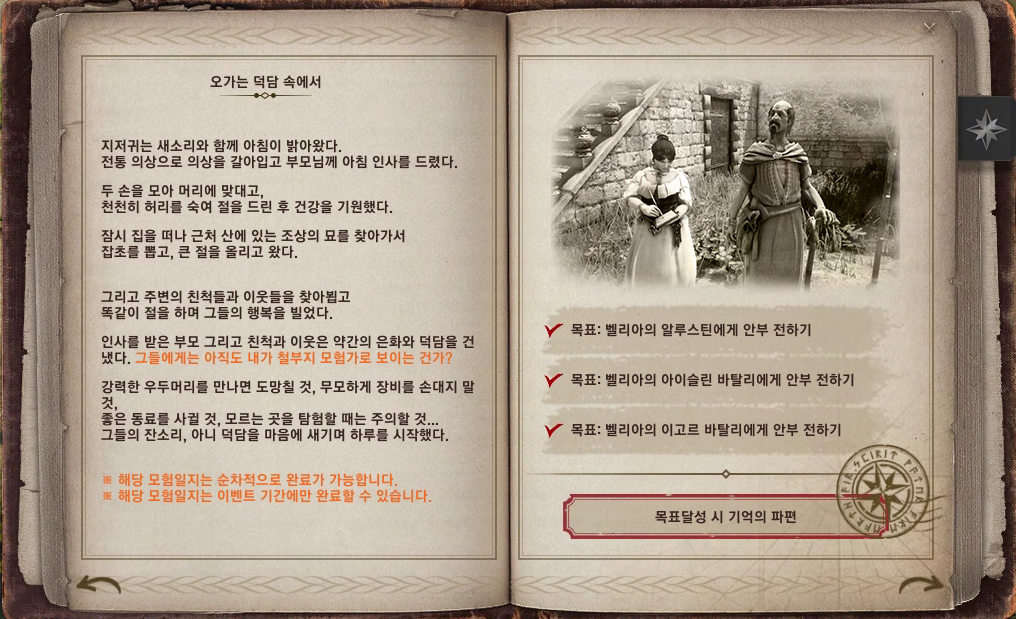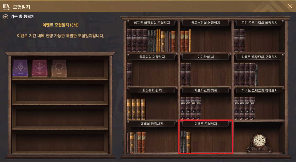 * 이벤트 기간 종료 후에는 수주받은 의뢰까지 완료할 수 있으며, 더 이상 모험일지를 진행할 수 없으니,