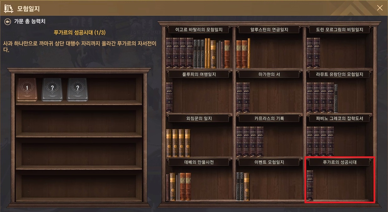 2021.02.09 업데이트로 추가된 신규 모험일지 푸가르의 성공시대 1권 정보예요.