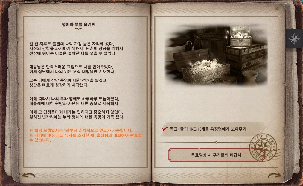 - 까마귀 상단의 기록일지의 '푸가르의 성공시대 3권'의 일부 완료 조건이 변경되었습니다.