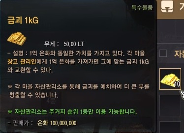 그리고 10억 금괴를 보여줘야하기 때문에 최소한 10억 은화는 가지고 있어야 해요.