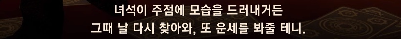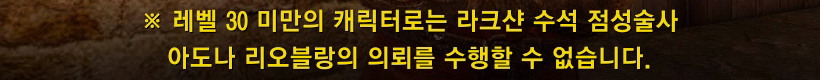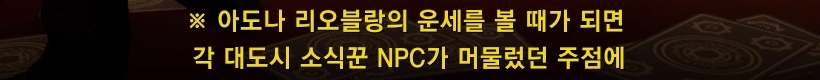 - 단, 레벨 30 미만의 캐릭터는 아도나 리오블랑이, 무엇을 해도 앞날이 창창하다고 판단하여 운세를 봐주지 않으니 주의 부탁드립니다.