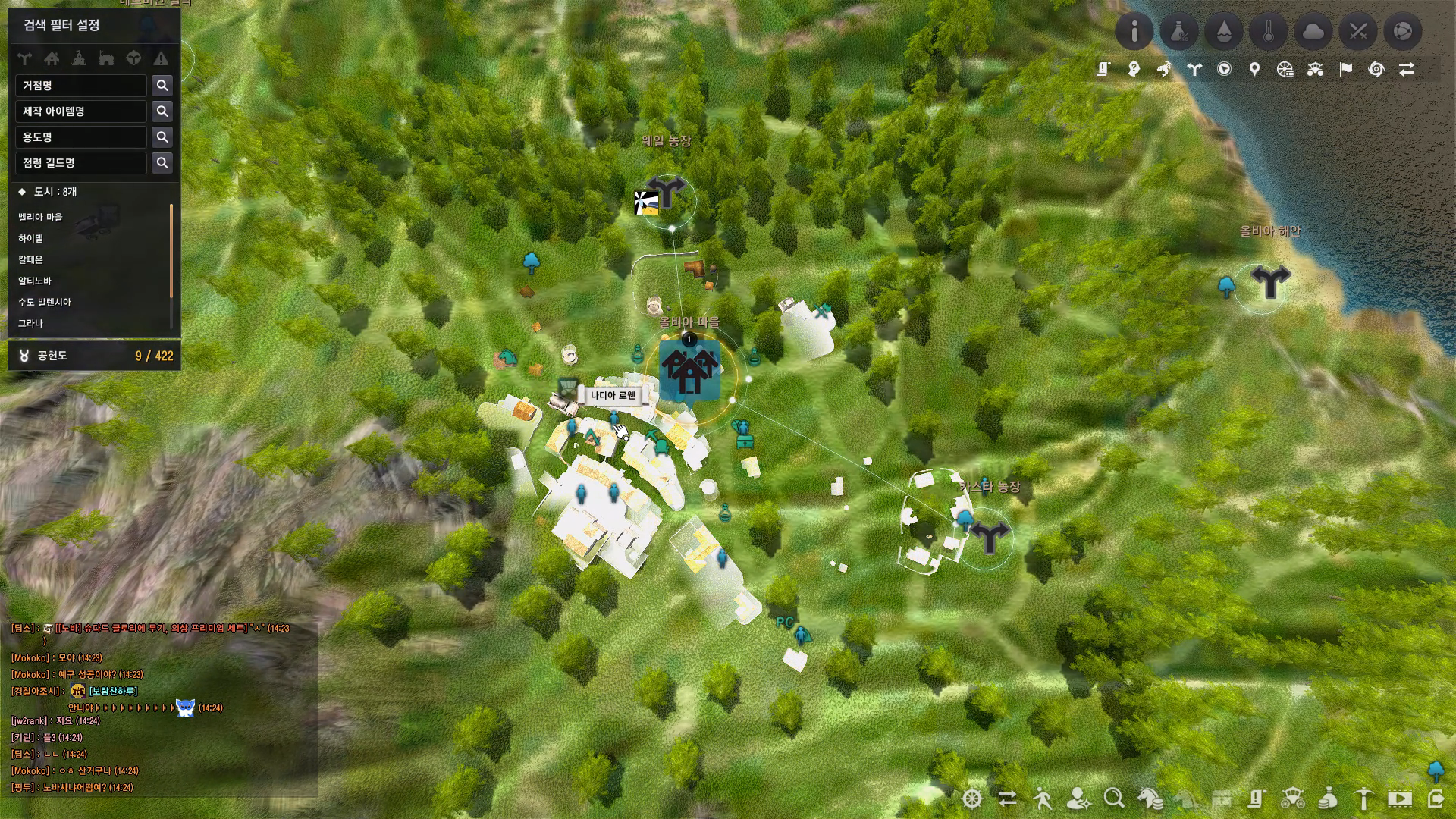 의뢰를 시작하기에 앞서 아도나 리오블랑의 위치를 확인하기 위해 대도시 여관에서 상세 위치에 대한 정보를 얻었어요.