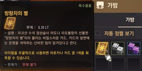 방랑자의 별을 사용하면 해당 목록 중에 1개를 획득할 수 있어요.