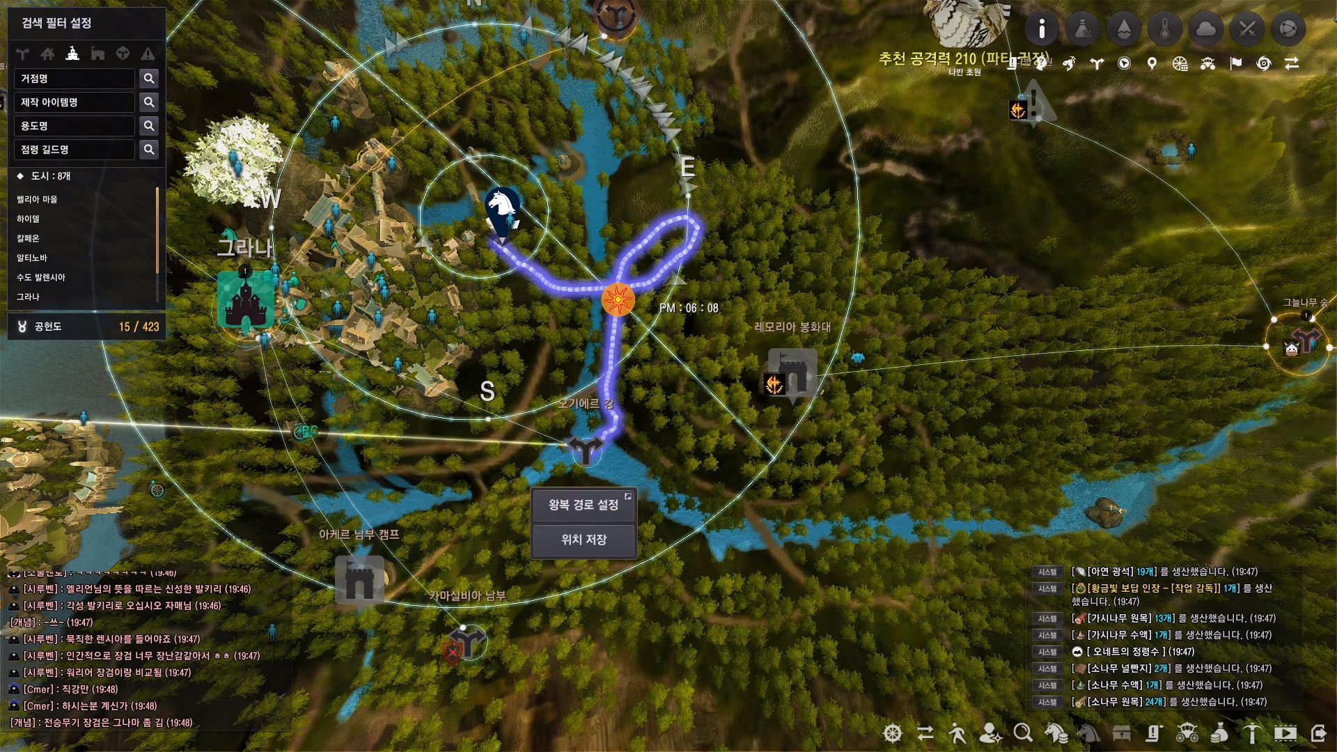 지식을 획득하고 지식 내용을 살펴보면 나머지 재료의 힌트를 줘요. 오기에르 강 거점관리자와 셰레칸의 묘 거점관리자를 찾아가 재료를 교환하면 돼요.