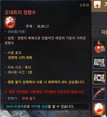 다른 보물 아이템엔 크게 관심이 없었지만 일명 '무한 물약'이라고 불리는 오네트의 정령수는 정말 가지고 싶었어요.