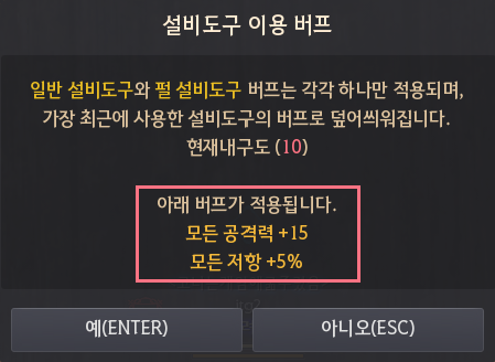 ● 버프 효과가 있는 주거지 설비도구에 상호작용하였을 때, 받을 수 있는 버프 효과의 이름이 노출되도록 개선되었습니다.