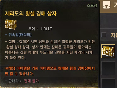 - 칼페온 황실 경매장에서 제리모의 상자 열기