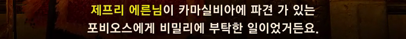 58 레벨 이상, 개편된 카마실비아 메인 의뢰를 완료하고 드리간의 지도자 두르게프와 친밀도가 1 이상일 때 포비오스에게 '상단이 생존하는 법' 의뢰를 수주받을 수 있고, 만약 포비오스의 제안을 거절하면 흑정령을 통해 '영웅의 두 얼굴' 의뢰를 수주하게 되며 다른 스토리의 의뢰를 진행할 수 있어요.