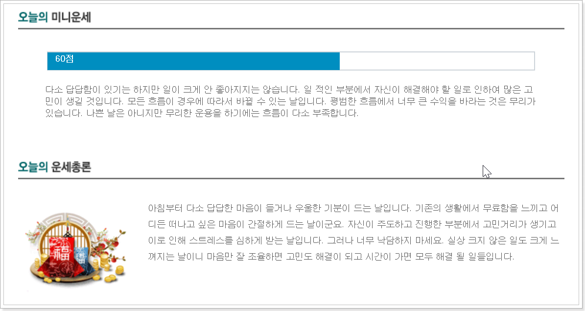 오늘의 운세를 더 자세하게 보고 싶다면 네이버에 운세 정보를 제공하는 포춘82에서 확인할수 있습니다.
