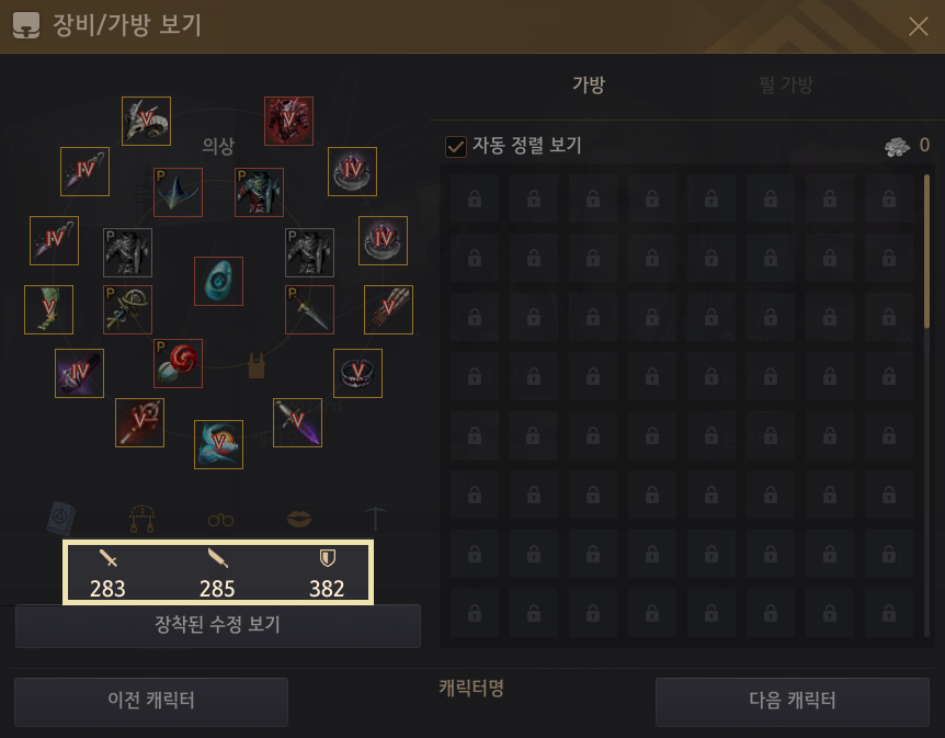 기존에는 장비와 가방만 볼 수 있고 공격력과 방어력을 볼 수 없어서 불편했는데 이 부분이 개선돼서 좋아졌어요.
